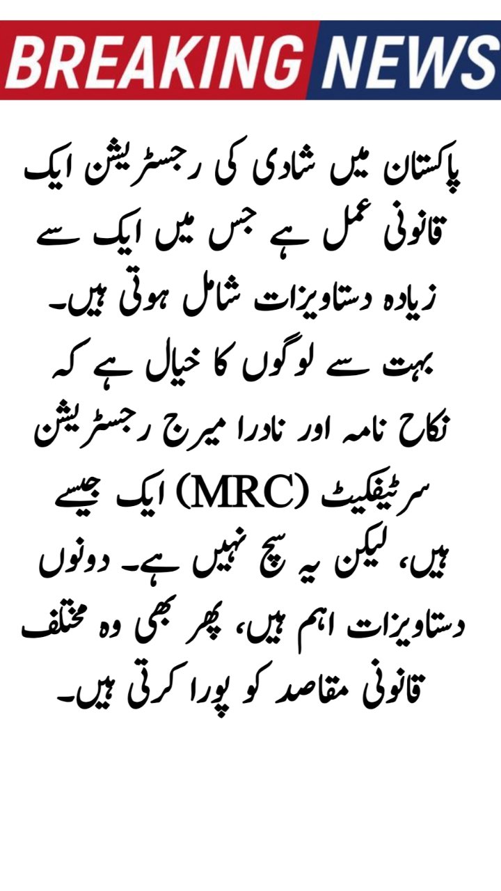 The NADRA Marriage Registration Certificate (MRC) is a computerized and standardized certificate used for civil and official purposes. Although commonly called a NADRA certificate, it is not directly issued by NADRA.