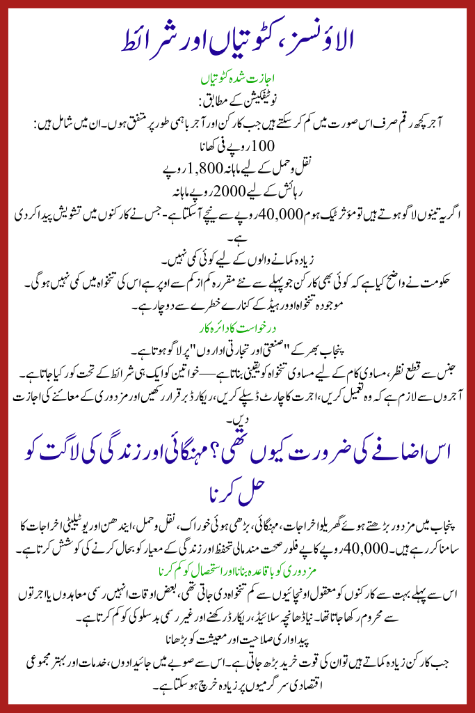 The Punjab Government Wage Increase has clarified that any worker already making above the new set minimum will not must his or her salary decreased. Existing pay overhead the verge remains endangered.